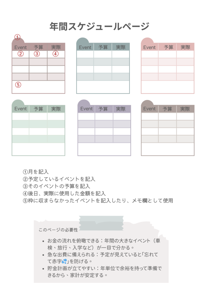 年間で「いつお金がかかるか」「どんなイベントがあるか」をざっくり書いておくことで、
