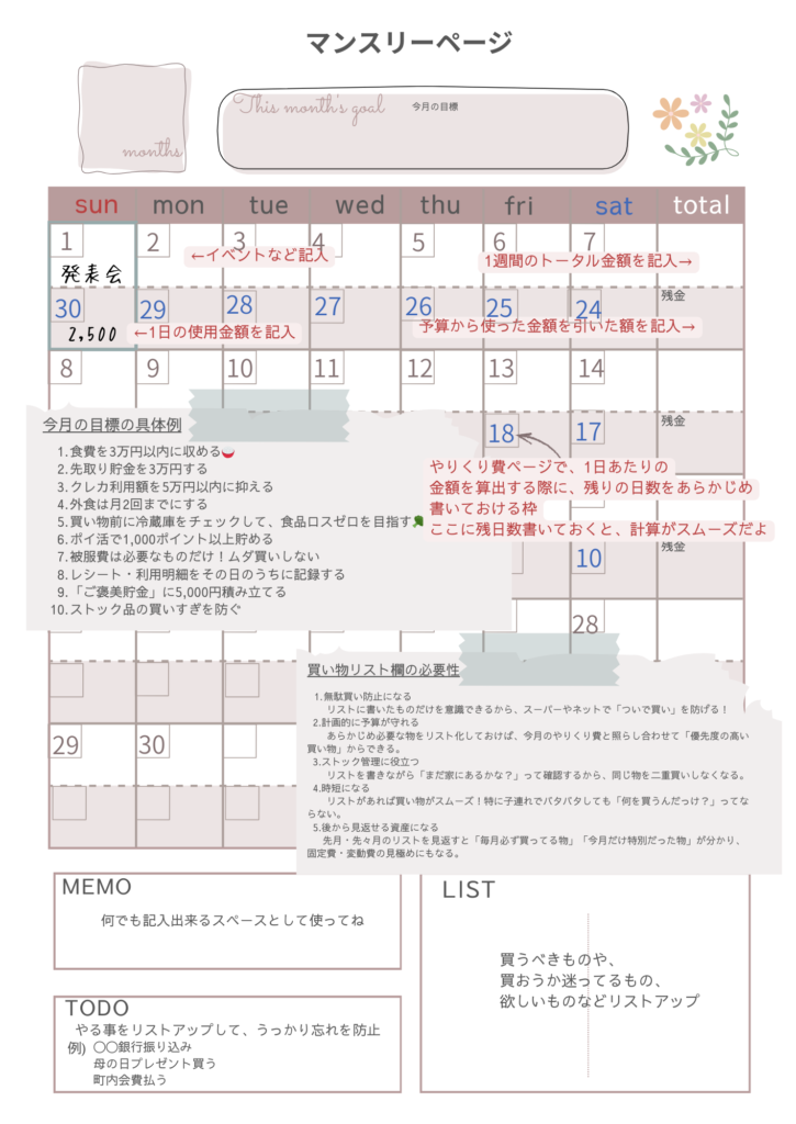 先の見通しが立ちやすくなり、ムリのない予算づくりができるようになるページです♡