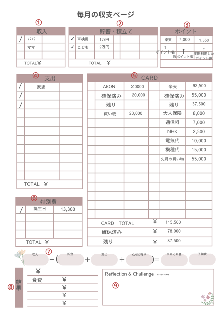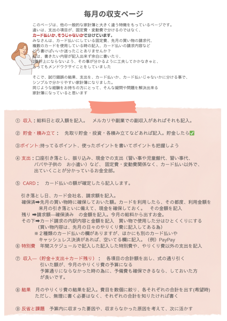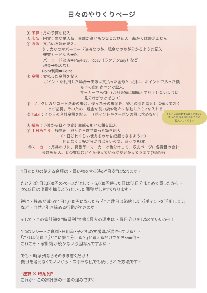 今月の使い方のイメージがつきやすくなり、家計管理がぐっとラクになるページです♡